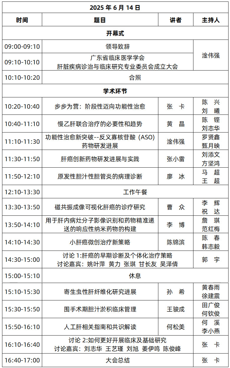 为进一步提高肝病治疗水平,广泛开展合作与学术交流,由广东省临床医学学会主办,广东省临床医学学会肝脏疾病诊治与临床研究专业委员会成立筹备组和中山大学附属第三医院共同承办的广东省临床医学学会肝脏疾病诊治与临床研究专业委员会成立大会暨第一届第一次学术交流会将于2025年6月14日在广州举行。