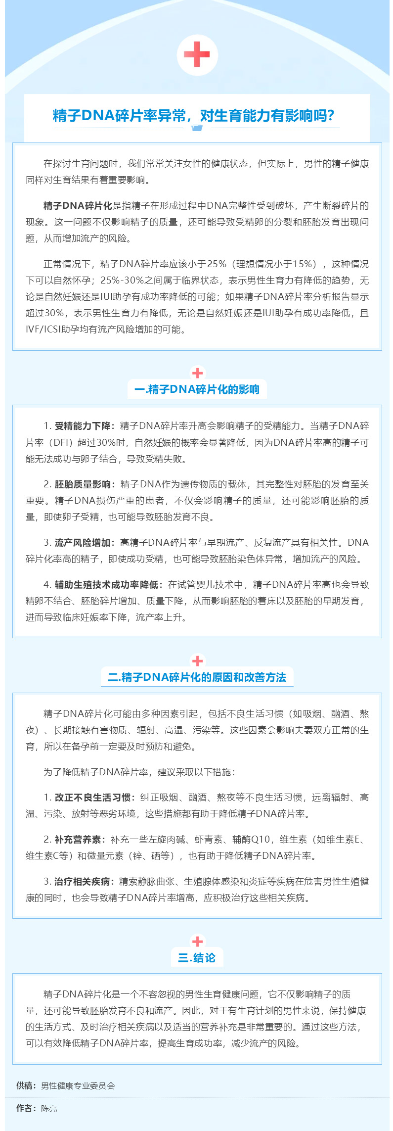 【男性健康科普】精子DNA碎片率异常,对生育能力有影响吗?