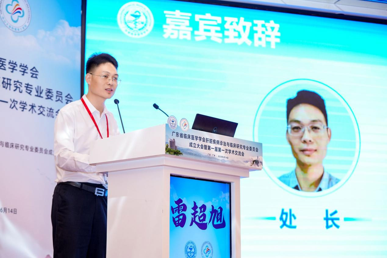 会议伊始,在淦伟强教授主持下,广东省临床医学学会副会长陈筱潮教授、广东省公共卫生研究院夏英华教授、广州市科技局生命科技处雷超旭处长发表了热情洋溢的致辞。领导们对肝脏疾病诊治与临床研究专业委员会的筹备工作表示肯定,并对专委会的成立表示热烈祝贺。他们强调,肝脏疾病是严重威胁人民健康的重大疾病,其诊治与研究面临诸多挑战,亟需多学科协作与创新。专委会的成立恰逢其时,希望专委会能搭建高水平学术平台,凝聚专家智慧,推动肝脏疾病诊疗规范化、精准化发展,提升广东省乃至全国的肝脏疾病防治水平,为健康中国建设贡献力量。