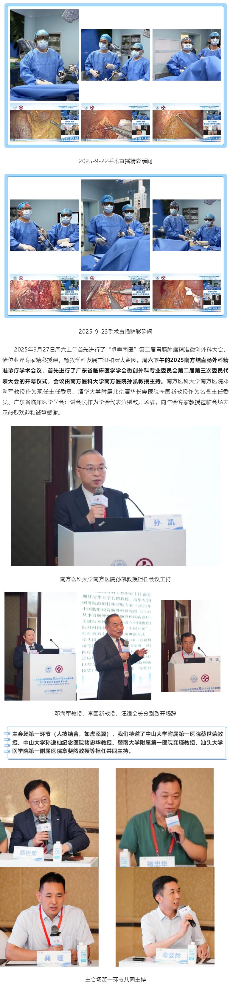 2025年9月22-23日我们首先进行了连续两天的手术直播演示以开启热身,南方医科大学南方医院结直肠外科手术天团,轮番上阵,精彩演绎,并与在线主持和讨论嘉宾一起实时交流和经验分享,为线上医学同道共同奉献了一场场经典规范和可圈可点的手术实操,获得了热烈反响和积极互动。