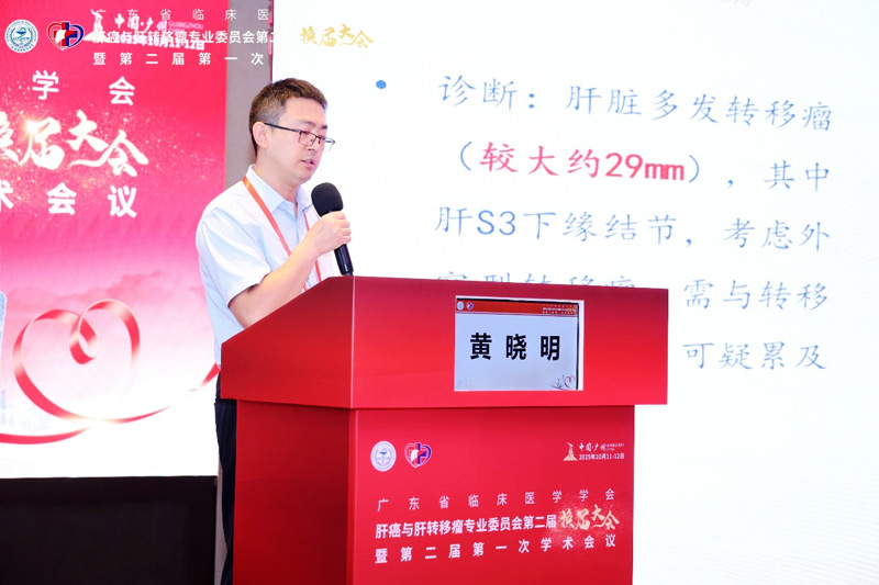 会议于10月11日下午14:30在中山大学附属肿瘤医院李斌奎教授的主持下正式拉开帷幕。大会主席中山大学附属肿瘤医院元云飞教授致辞中肯定了专委会在推动学科发展与信息共享方面的重要贡献,并指出当前我国结直肠癌肝转移诊疗仍存在不均衡现象,强调规范化与同质化管理的紧迫性。学术环节中首先由中山大学附属肿瘤医院结直肠科陈功教授结合了2025年ASCO会议多个关于结直肠癌肝转移的研究:COLLISION研究、TRIPLET研究等带来的新数据进一步论证既往的老观点,即强调以NED为目标的治疗策略在结直肠癌肝转移治疗决策中的核心地位。接着由中山大学附属肿瘤医院影像科张嵘教授分享了影像评估结直肠癌肝转移的要点,并介绍了化疗后肝损伤的影像特征改变,随后分别由南方医科大学珠江医院潘明新教授团队、中山大学附属第一医院陈创奇教授团队及中山大学附属第六医院潘卫东教授团队分别带来结直肠癌肝转移瘤的MDT 病例讨论,围绕典型与疑难病例展开多视角剖析,现场交流深入,彰显了多学科整合在推进肝转移瘤个体化治疗中的临床价值,来自省内多个中心的肝胆领域专家在讨论环节中纷纷提出不同见解充分交流,现场讨论氛围十分热烈,学术气氛浓厚。