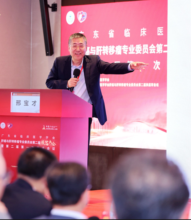 换届仪式后,第二届专委会首次学术会议随即展开。北京大学附属肿瘤医院邢宝才教授就COLLISION研究背后的故事,回顾了消融与手术切除在肝转移瘤治疗中的循证历程,强调在解读临床研究时应保持科学、客观的态度,避免过度解读结果;复旦大学附属肿瘤医院王鲁教授分享了尾状叶手术的外科切除的手术入路及操作要点,为高难度肝段手术提供了实用指引;在肝内胆管癌转化治疗领域,复旦大学附属中山医院施国明教授介绍了GLOP研究的最新成果,探讨了靶向药物联合免疫治疗与全身化疗作为肝内胆管癌转化策略的潜力与前景;中山大学附属第三医院肝脏外科暨肝移植中心的李华教授聚焦肝移植在结直肠癌肝转移中的探索,指出在严格筛选优势人群并最大程度降低肿瘤负荷的基础上,肝移植有望成为延长患者生存的有效手段;中山大学附属肿瘤医院王德深教授从内科视角系统梳理了近年来结直肠癌肝转移化疗领域的重要进展,强调个体化用药与疗效优化;药理机制方面,李苏教授深入解析了胆道肿瘤靶向治疗的作用机制;张耀军教授则聚焦Her2阳性胆道癌,阐述了Her2靶向干预的研究突破与临床前景;李斌奎教授结合肝脏外科实践,重申以“无疾病证据(NED)”为目标的全程管理理念,并就多发结直肠癌肝转移的治疗决策、影像学消失病灶的处理、术中定位技术以及切除联合消融等热点问题分享了宝贵经验;高飞教授则介绍了其团队近期发表的D-Triplet研究,初步探索肝动脉灌注免疫联合靶向药物这一新型治疗模式的有效性与安全性;中山大学附属第三医院陈展洪教授围绕双免疫治疗在肝癌中的应用进展展开分析,强调在临床实践中需严格把握适应证,加强用药监测,以保障治疗安全与疗效。