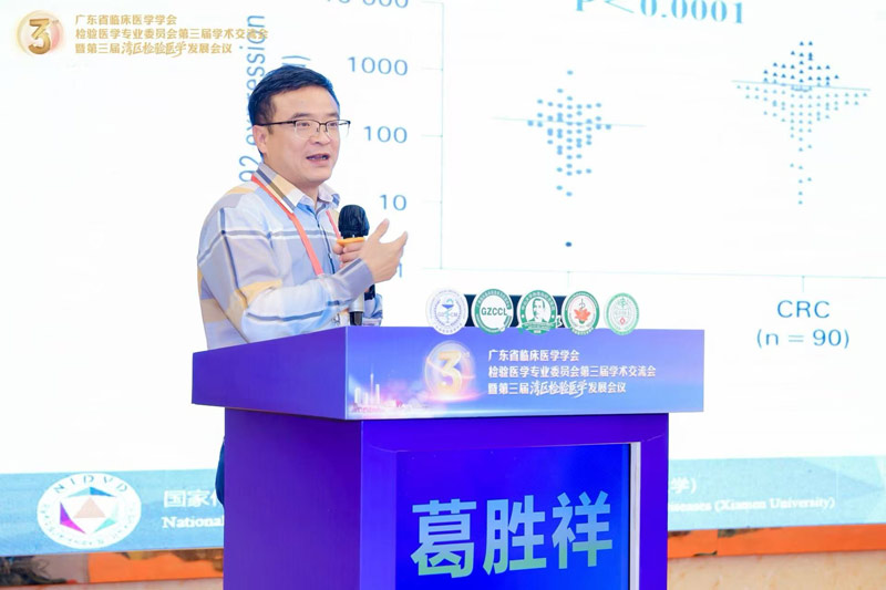 厦门大学公共卫生学院副院长葛胜祥教授进行了《基于选择性富集及探针特异性末端介导的高敏miRNA检测及初步应用》的报告。葛教授首先介绍了 miRNA 作为液体活检的新手段,在癌症等疾病早期诊断中的潜力及广泛应用,然后提出了 miRNA检测技术面临的关键挑战,最后介绍了团队对高性能 miRNA 检测技术平台建立的期望,以及高敏检测方案在 EBV、HCMV 相关疾病上开展的应用研究。
