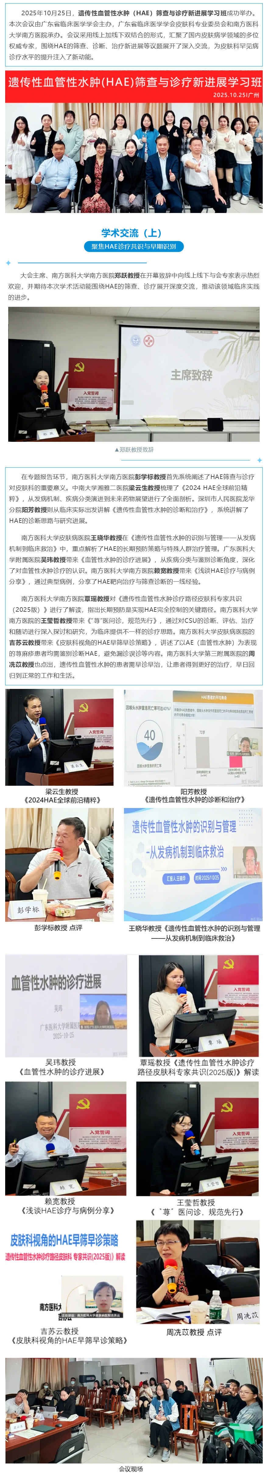 【学会新闻】遗传性血管性水肿(HAE)筛查与诊疗新进展学习班顺利召开