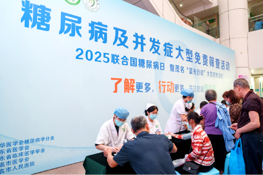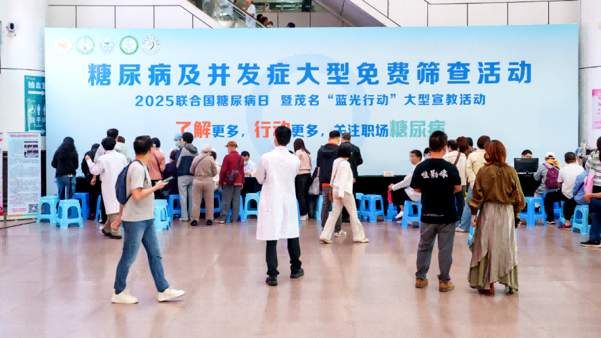 为迎接第19个“联合国糖尿病日”,积极响应“糖尿病与幸福感”的全球主题,近日,茂名市人民医院成功举办了一系列主题宣传与公益义诊活动,通过多学科联合义诊、健康宣教以及精心策划的“蓝光行动”,将糖尿病防治的科普知识传递给广大市民,以实际行动守护公众健康。