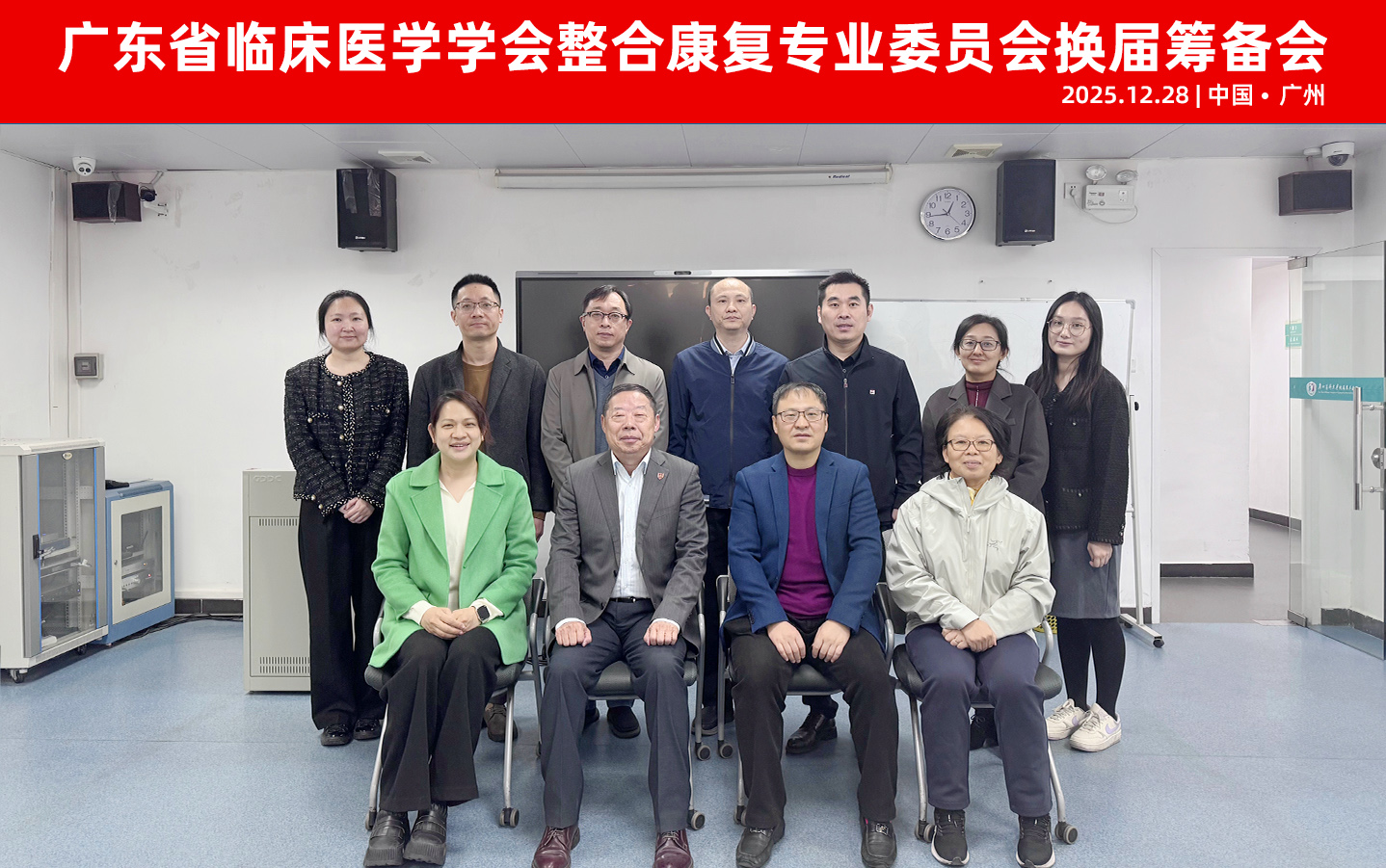 会议最后,全体参会人员合影留念,定格下这一凝聚智慧、共话发展的重要时刻。此次换届筹备会的顺利召开,不仅明确了换届工作的具体流程和要求,更凝聚了全省康复医学领域专家的力量与共识,为广东省临床医学学会整合康复专业委员会的换届工作奠定了坚实基础。未来,新一届专业委员会将继续发挥平台优势,推动全省整合康复医学学科建设、人才培养与学术交流,为提升区域康复医疗服务水平、保障人民群众健康福祉作出更大贡献。