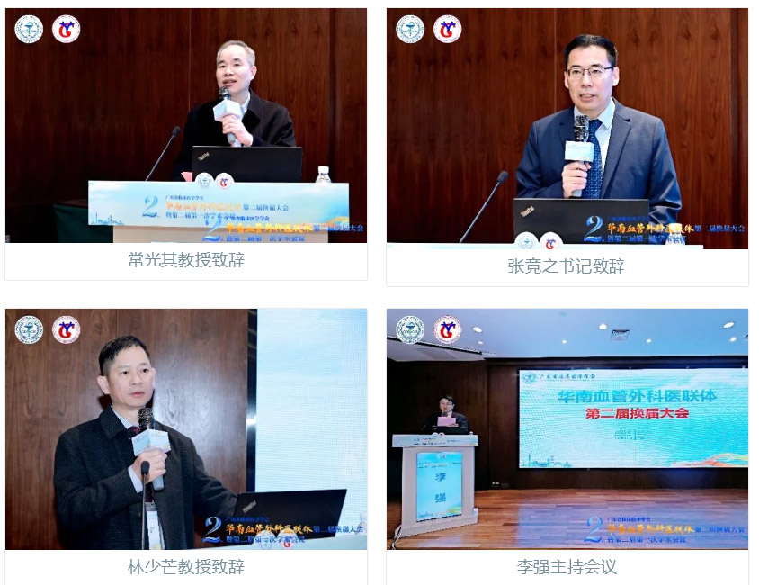 换届大会由广州医科大学附属第二医院血管外科李强主持,广州医科大学附属第二医院血管外科学科带头人林少芒教授、张竞之书记和广东省临床医学学会副会长常光其教授进行致辞。三位教授的致辞,饱含对医联体未来发展的殷切期望,为医联体指明了前进的方向。