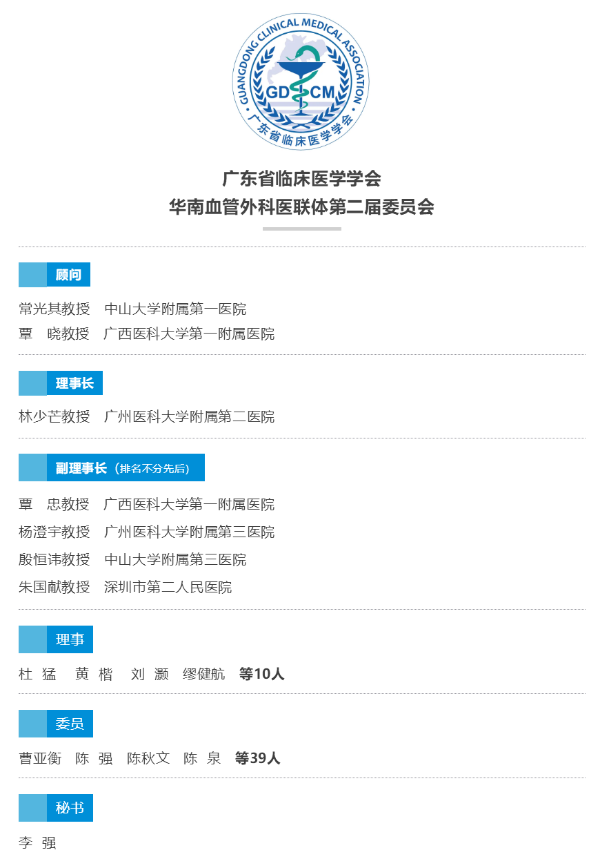接着进入大会的核心环节--选举仪式,经过紧张有序的选举,最终选举出广东省临床医学学会华南血管外科医联体第二届委员会名单: