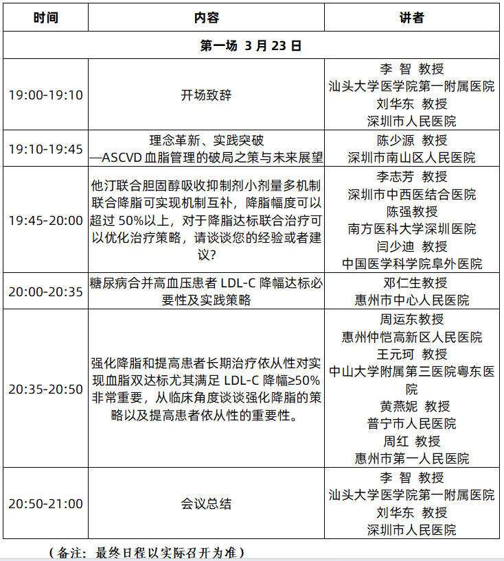 为进一步提高心血管疾病治疗水平,广泛开展合作与学术交流,由广东省临床医学学会主办,汕头大学医学院第一附属医院承办的“三高共管慢病综合管理系列学术会议”将于2026年3月23日-7月30日在网络举行,会议计划3月召开2场,4月、5月、6月每个月召开4场,7月召开1场,合计召开15场。